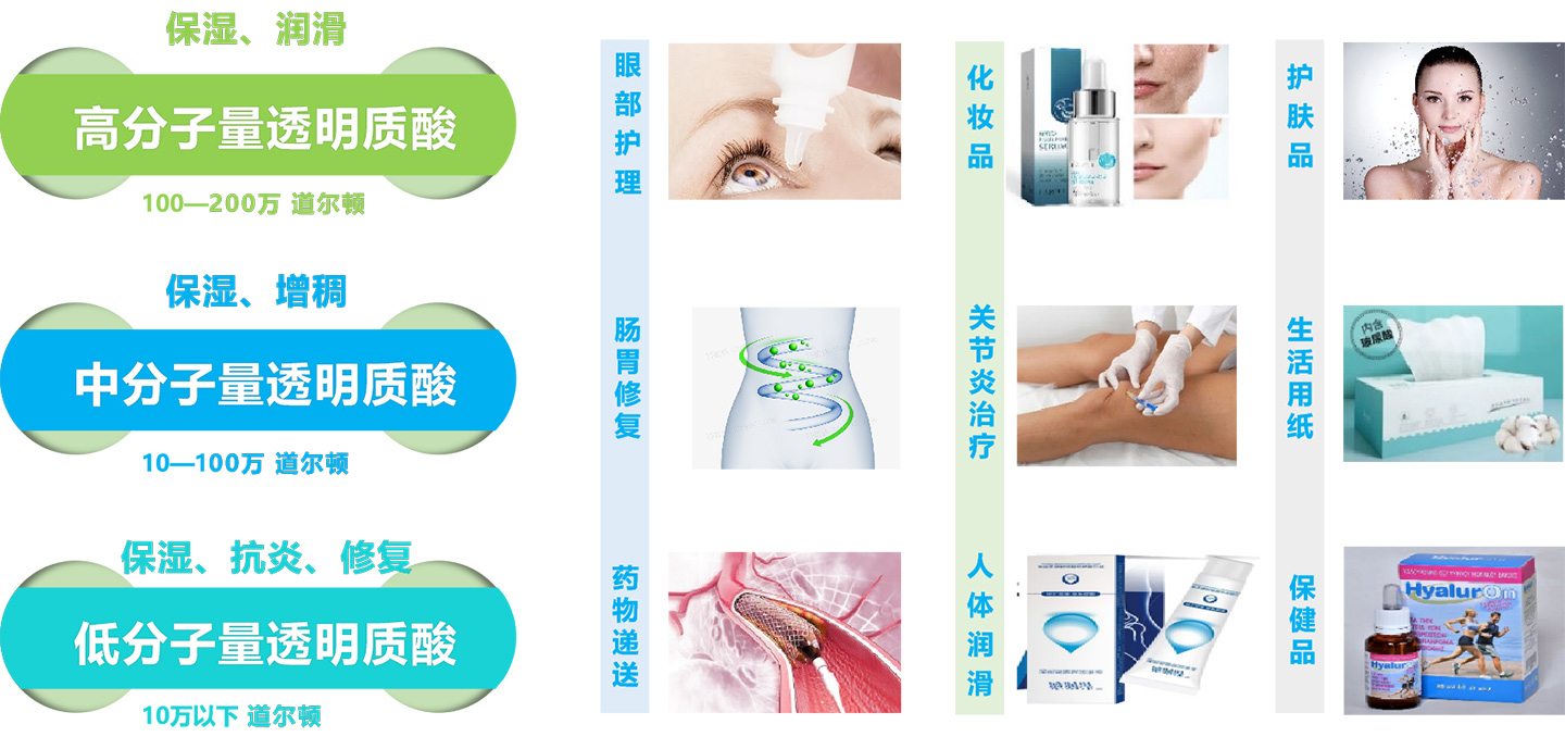 特定低分子量透明質酸是一種經過水蛭透明質酸酶特殊處理的透明質酸,其分子量范圍在800Da 到10 KDa 之間。相較于普通透明質酸,特定低分子量透明質酸的分子量較低,因此其透皮吸收性好,可以迅速透過皮膚,到達皮膚深層,從而具有更好的保濕性能和抗衰老性能。此外,特定低分子量透明質酸還能夠促進抗炎修復和皮膚細胞再生,有助于緩解皮膚受損和衰老的癥狀。特定低分子量透明質酸在醫學美容和護膚品領域得到廣泛應用。